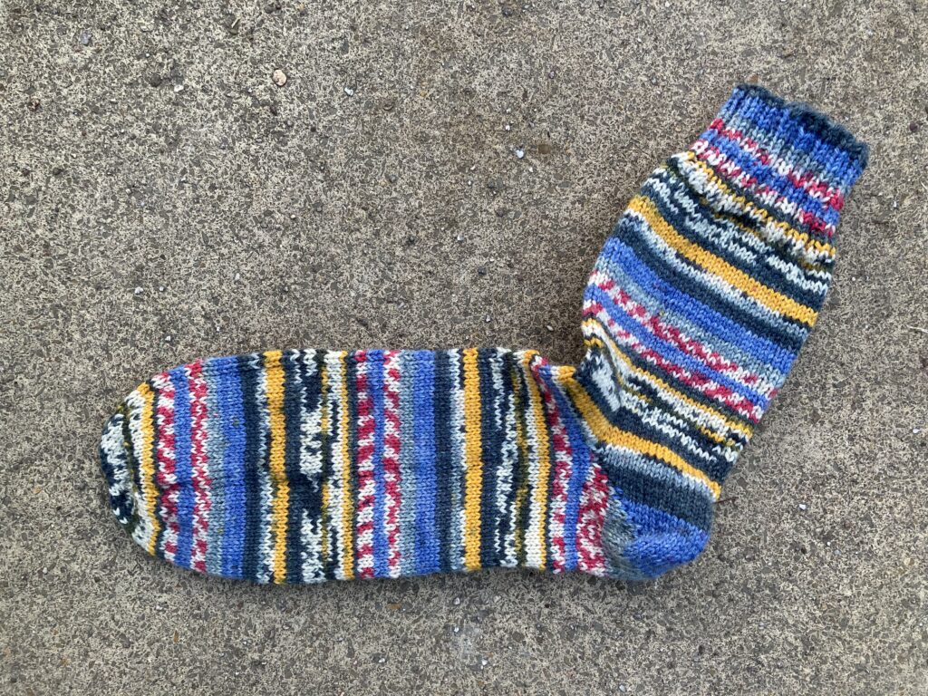 Jan.30 Socken 2026 Größe 39 Posted on 30. Januar 2026 by Karin Harth Socken 2026 Größe 39 7/2026 Größe 39 Opal Schafpate 16, Porträäh, Farbe 11451 Frida die Gänseblümchenliebhaberin 75% Schurwolle 25% Polyamid 2 er Nadelspiel 16 M, 20 R Bündchen, 50 R Schaft, 6 F, 84 R bis Sternenspitze 4,3,2, Verbrauch 64 g